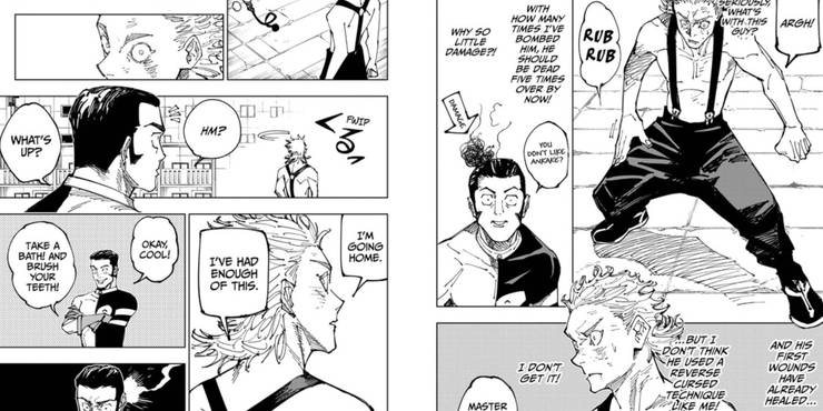 Isso provavelmente explica sua incrível proeza de luta. Ele mostrou algumas habilidades inacreditáveis ​​em sua luta contra Hazenoki, incluindo velocidade e força sobre-humanas. Ele se moveu tão rápido que poderia facilmente ser confundido com teletransporte. Agora que sua Técnica Amaldiçoada que altera a realidade foi revelada, não seria surpreendente se ele realmente estivesse se teletransportando. Ele também conseguiu enviar Hazenoki voando através de edifícios com seus golpes enquanto aparentemente não era afetado pelos ataques pelos quais ele próprio foi atingido.